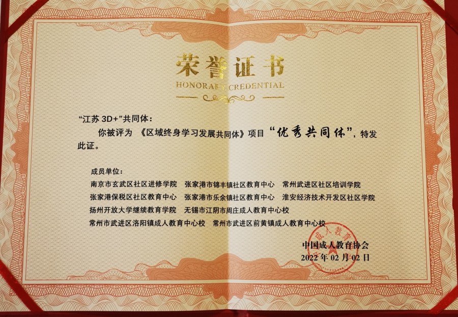 南京市玄武区社区进修学院牵头的“江苏3D+”共同体被评为国家级“优秀共同体”