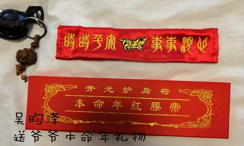吴昀泽同学值爷爷本命年之际,亲手绣一个祝福腰带送给从小疼爱自己的爷爷,希望爷爷可以长命百岁。