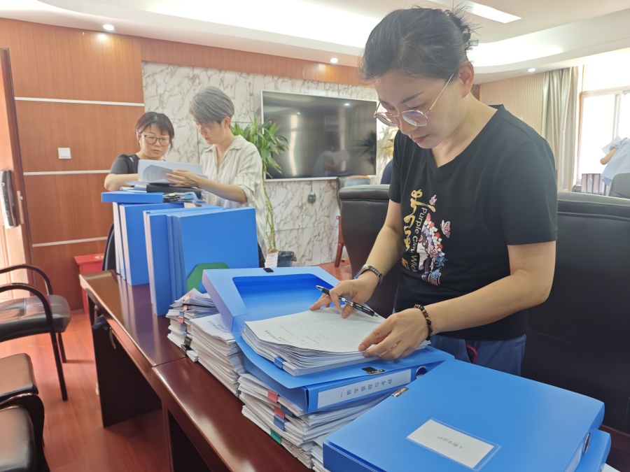 随后,专家组分成两组分别对开放教育、成人教育的教学资料进行查阅并检查了我校的保密室、监控室等考点设置情况。