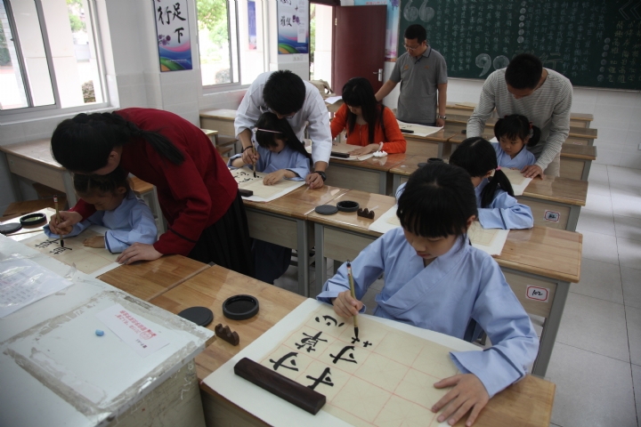 玄武社区进修学院开办的“鹿鸣书社”以书法教学为主线,贯以朴素、简明、温和的国学熏养,使孩子在学习书法技艺的同时,收获系统的国学文化知识,立身修心、博学温雅、文武兼备、知能兼求。(玄武区社区进修学院王晓羽/沈青)