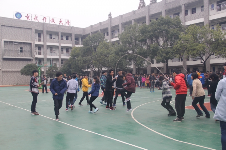 2015年12月1日中午12:30,多宝官方网站的操场上一片欢腾的景象,为广泛开展冬季阳光体育活动一小时,培养团结、拼搏的精神,在校园内举行了一场紧张、激烈的跳长绳比赛。