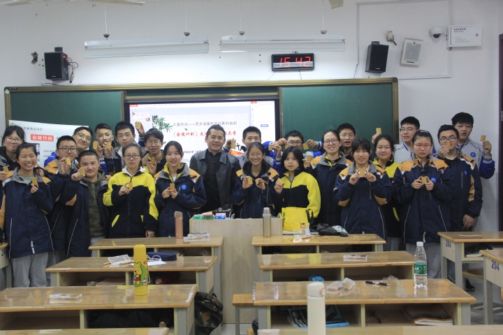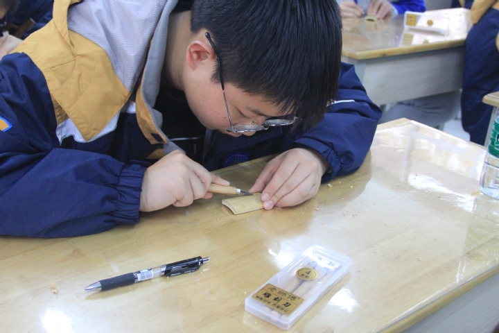 何老师在培训体验课堂上,先向玄武开大的学生们介绍了金陵竹刻的历史由来,用一张张精美的竹刻照片,讲述着金陵竹刻精美的传统的技艺,让学生们对非遗文化有更深入的了解。接着何老师拿出自己的竹刻作品,和学生们讲起了竹刻的阴刻和阳刻两种不同技法,并亲手进行了示范。学生们在听完老师的讲授后,兴趣盎然的开始了自己的亲手体验,在悦耳的丝竹声中,学生们先后完成了自己的首个竹刻作品,在互相的交流展示中,结束了一堂愉快的金陵竹刻体验课。
