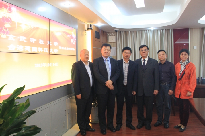 2015年10月14日下午,台湾建国科技大学总执行长兼副校长江金山、国际合作与交流处副处长陈铉文一行来校交流访问。校长业冰、党支部书记王信芳、副校长查瑞祥、张树明会见了来访客人,双方在三楼会议室就两校校际合作、师生互访等方面进行了会谈。