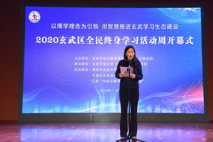 全民学习,终身学习是民族复兴赋予我们的历史使命,是追求民生优质发展的时代呼唤。2020年是一个特殊的年份,新冠病毒席卷而来,在区委、区政府的领导下,在省、市教育主管部门的工作指导下,玄武社区教育按照疫情防控工作常态化的要求,坚持以博学理念为引领,把快乐学习作为快乐生活的一部分,开展了丰富多彩的全民终身学习活动。11月20日下午,玄武区以“以博学理念为引领 用智慧推进玄武学习生态建设”为活动主题,由玄武区社区教育委员会、玄武区教育局主办,多宝官方网站、玄武区社区进修学院承办;南京市玄武中等专业学校、玄武湖街道社区教育中心、江苏“3D社区教育发展合作联盟”协办的玄武区“2020年全民终身学习活动周开幕式”在南京市玄武中等专业学校隆重举行。参加活动的领导和来宾有江苏省成人教育协会会长孙曙平,玄武区委常委、宣传部部长施扬,南京开放大学副校长张煌,玄武区委宣传部副部长韩春云、玄武区教育局二级调研员戴继根、中山陵园管理局宣教处处长杨斌,南京市教育局职社处宋冬梅科长以及玄武区各街道党工委副书记、社区教育中心主任及受表彰的居民代表、多宝官方网站、玄武中等专业学校、南京市逸仙小学师生代表约200余人参加了该活动。