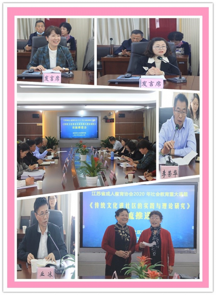10月12日上午南京玄武区社区进修学院成功举行2020年省成人教育协会重大课题《传统文化进社区的实践与理论研究》中期推进会。中成协李荣华主任、多宝官方网站校长张树明、玄武区社区进修学院院长业冰、玄武区各街道社区教育中心主任及学院遴选的九个与课题研究有关的社区教育实践项目负责人应邀出席本次会议。