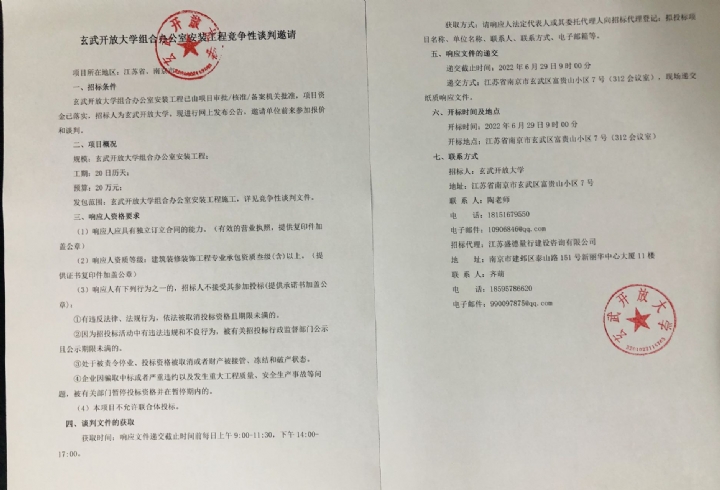 多宝官方网站组合办公室安装工程竞争性谈判邀请