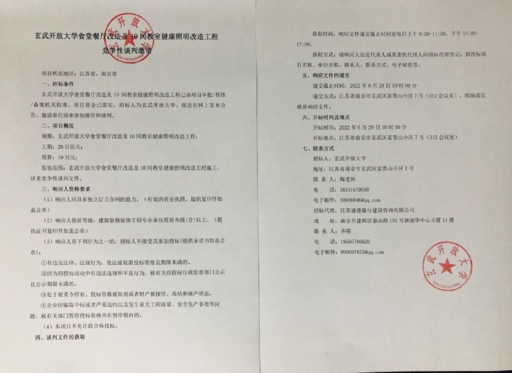 多宝官方网站食堂餐厅改造及10间教室健康照明改造工程竞争性谈判邀请
