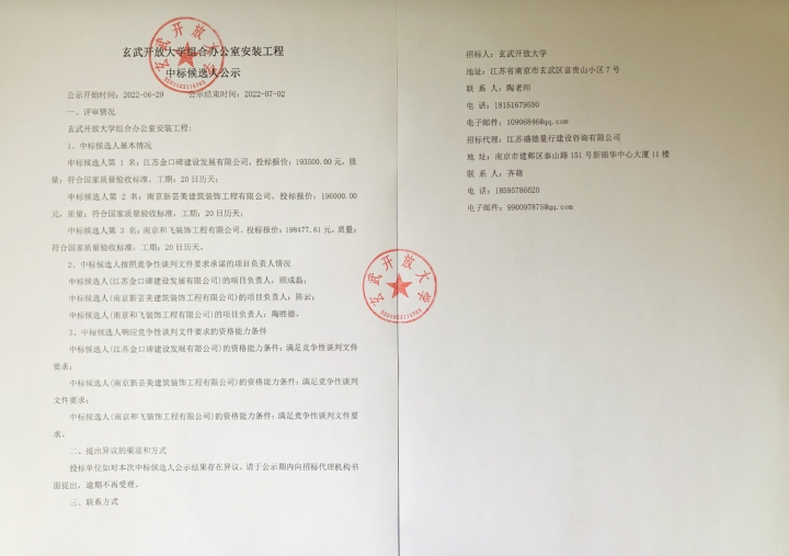 多宝官方网站组合办公室安装工程 中标候选人公示
