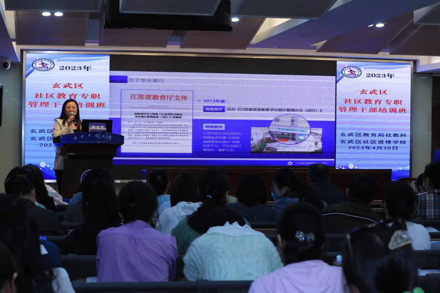 为不断提高玄武区全体社区教育专职管理干部的业务水平和工作能力,4月20日,由区教育局社教科、区社区进修学院共同举办的主题为:学习贯彻党的二十大精神,推动老年教育高质量发展——2023年玄武区社区教育专职管理干部培训班在多宝官方网站开班,由学校邓红静老师主持,多宝官方网站校长张树明、区社区进修学院院长业冰、区教育局社教科缪勇主任、区社区进修学院办公室主任沈青参加了开班仪式。本次培训班共分为线下(4月20日)、线上(4月26日)两期,培训对象为全区七个街道的社区教育中心主任和五十九个社区居民学校的专职管理干部。
