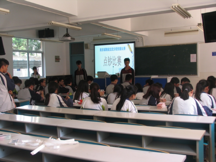 2014年5月我校迎来了一年一度的五月技能大赛月,举行了书法比、绘画、计算机打字、点钞、女生躲避球等丰富多彩技能比赛。