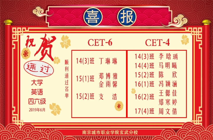 祝贺以下同顺利通过英语四六级等级考试