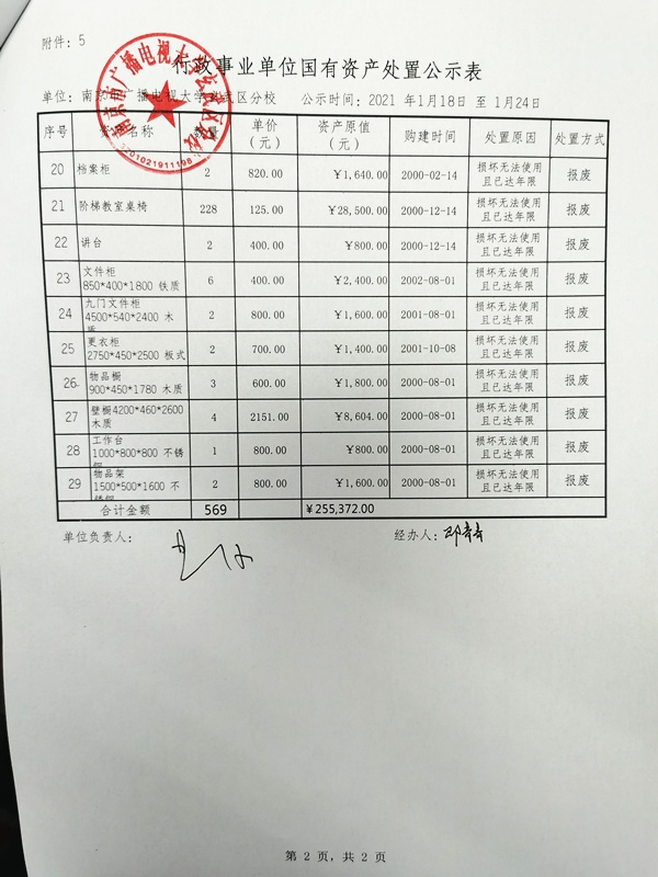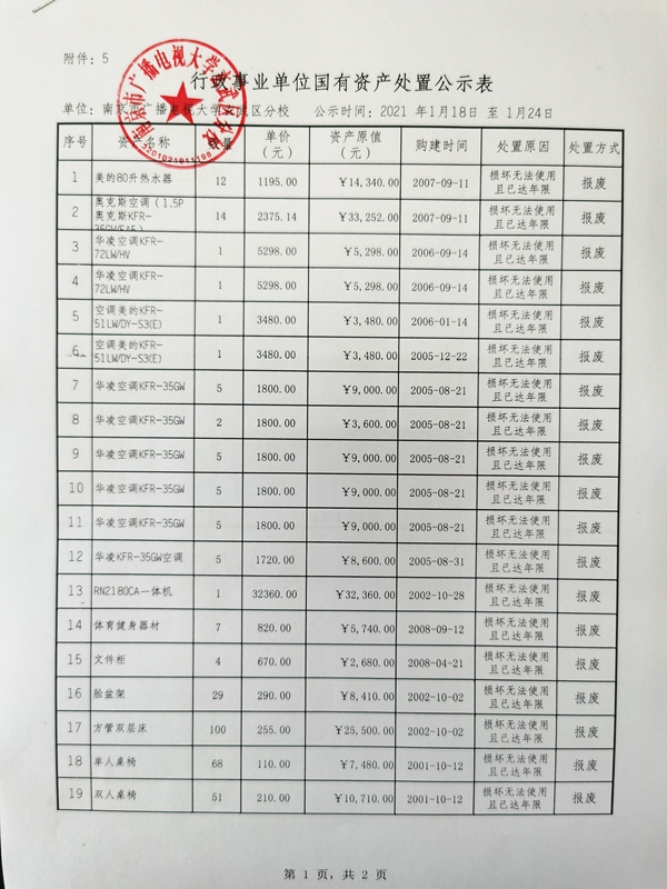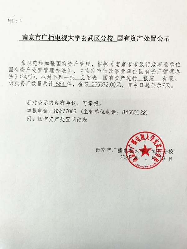南京市广播电视大学玄武区分校国有资产处置公示