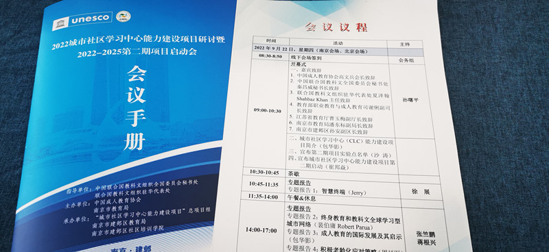 为了推进城市社区学习中心的建设与发展,践行终身教育和终身学习理念,加快建设学习型城市,形成学习型社会,9月21日-24日,由中国教科文全委会秘书处和联合国教科文组织驻华代表处立项、中国成人教育协会联合苏州市教育局主持实施的国际项目“2022年城市社区学习中心(CLC)能力建设项目研讨暨2022-2025第二期项目启动会”在南京召开。此次会议通过线上线下,设定北京会场、南京会场,由中国成人教育协会、南京市教育局主办。联合国教科文组织驻华代表处、中国成人教育协会、江苏省成人教育协会、苏州市教育局、总项目组人员、项目实验点负责人等出席会议。