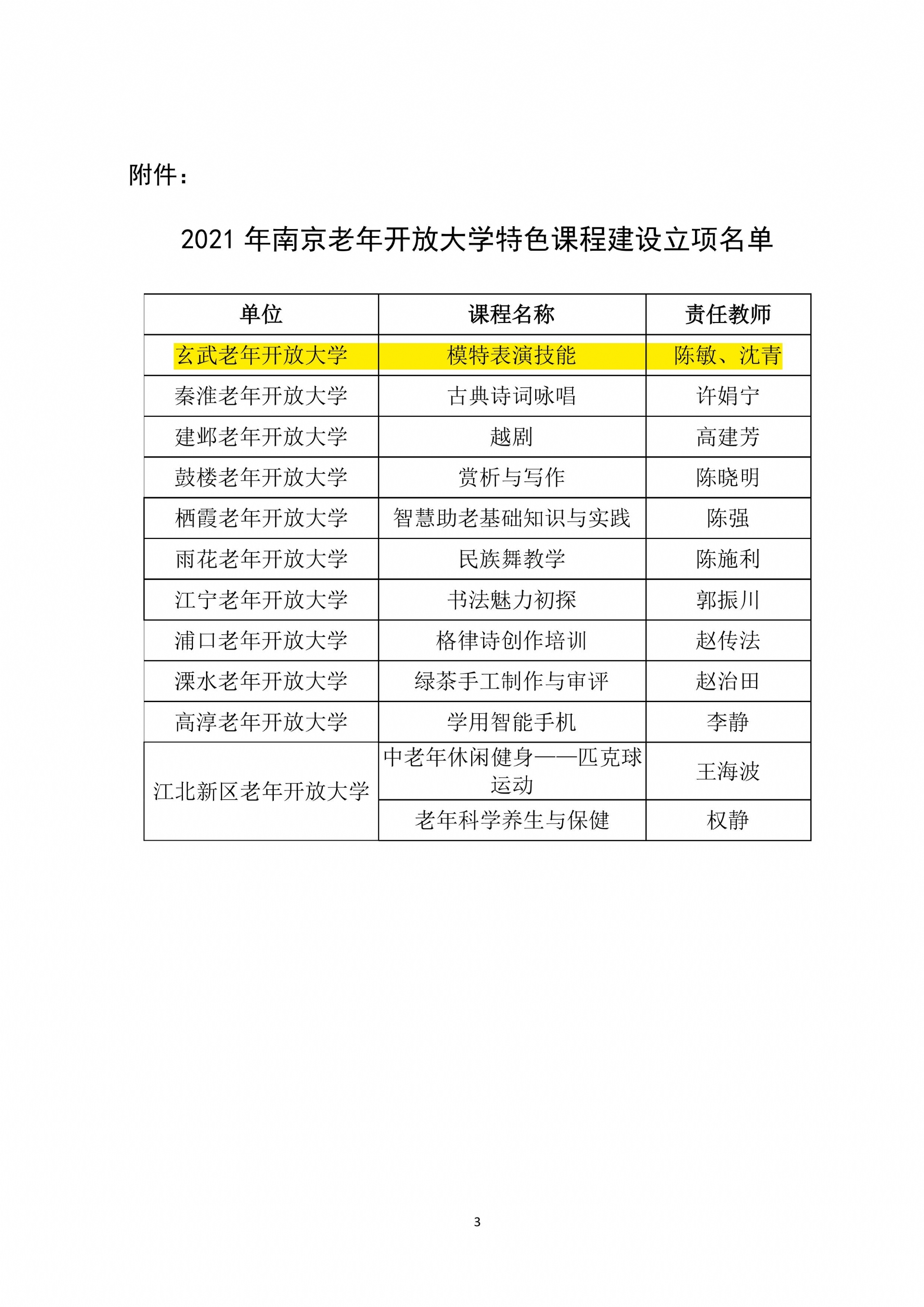 关于2021年南京老年开放大学课程体系建设立项的通知